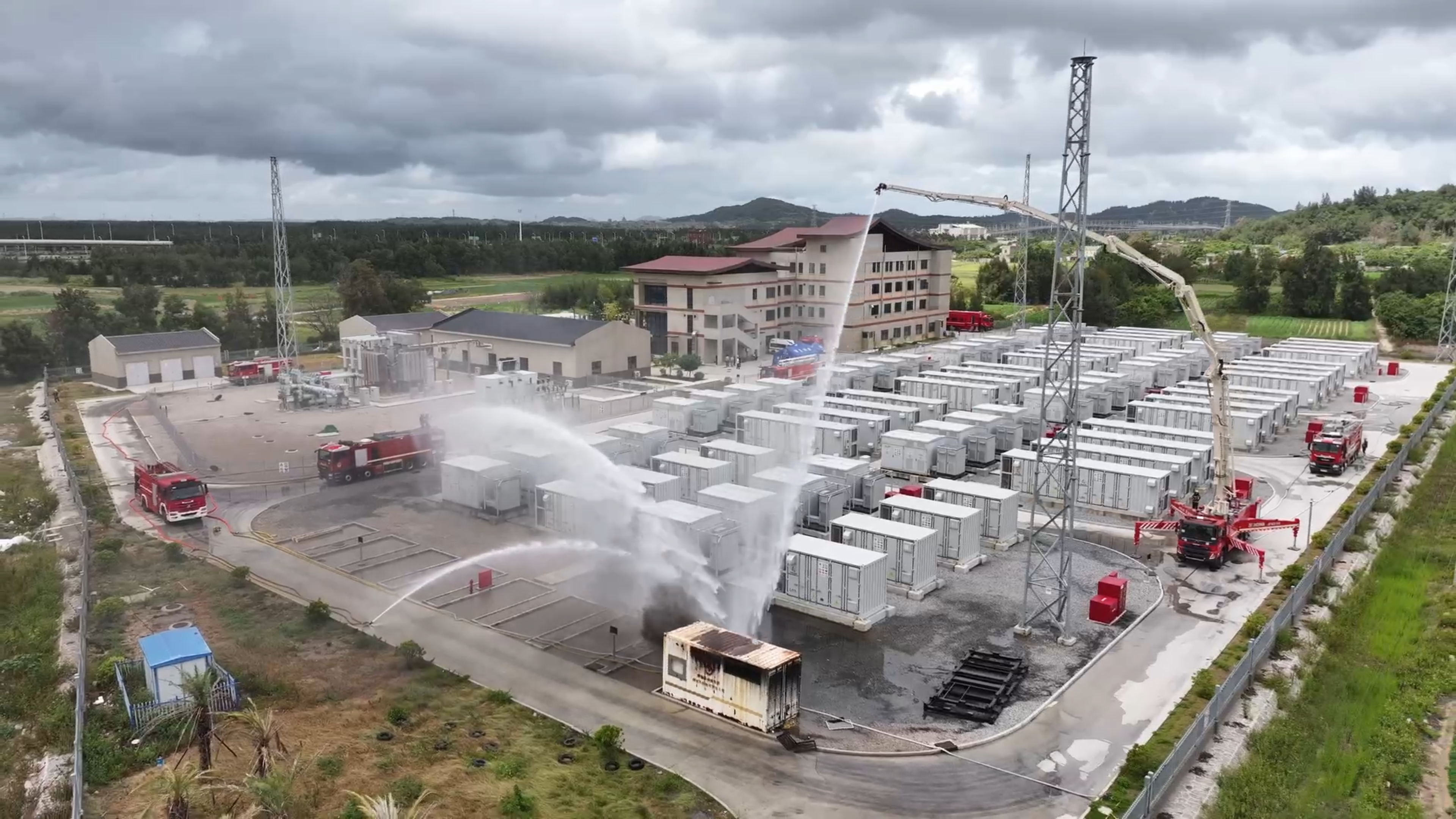 本次演练以平潭芦洋同享储能电站某储能电池舱毛病起火为模仿场景。火情发生后,电站微型消防站人员第一时间进行初期处置,当火势超出操控规模,当即向平潭消防救援支队宣布援助恳求。平潭消防敏捷呼应,一方面经过无人机前突侦查把握火场态势,联动多部分构成作战合力;另一方面分配大流量水炮、抬高喷发消防车等配备,对火点施行精准冲击与继续冷却。期间,应急通讯分队同步保证前后方通讯疏通,战勤分队做好后勤支撑。演练还特别设置泡沫灌注防爆废水循环使用环节,全方面掩盖救活救援要害场景。经过半小时协同作战,拟火情成功熄灭。